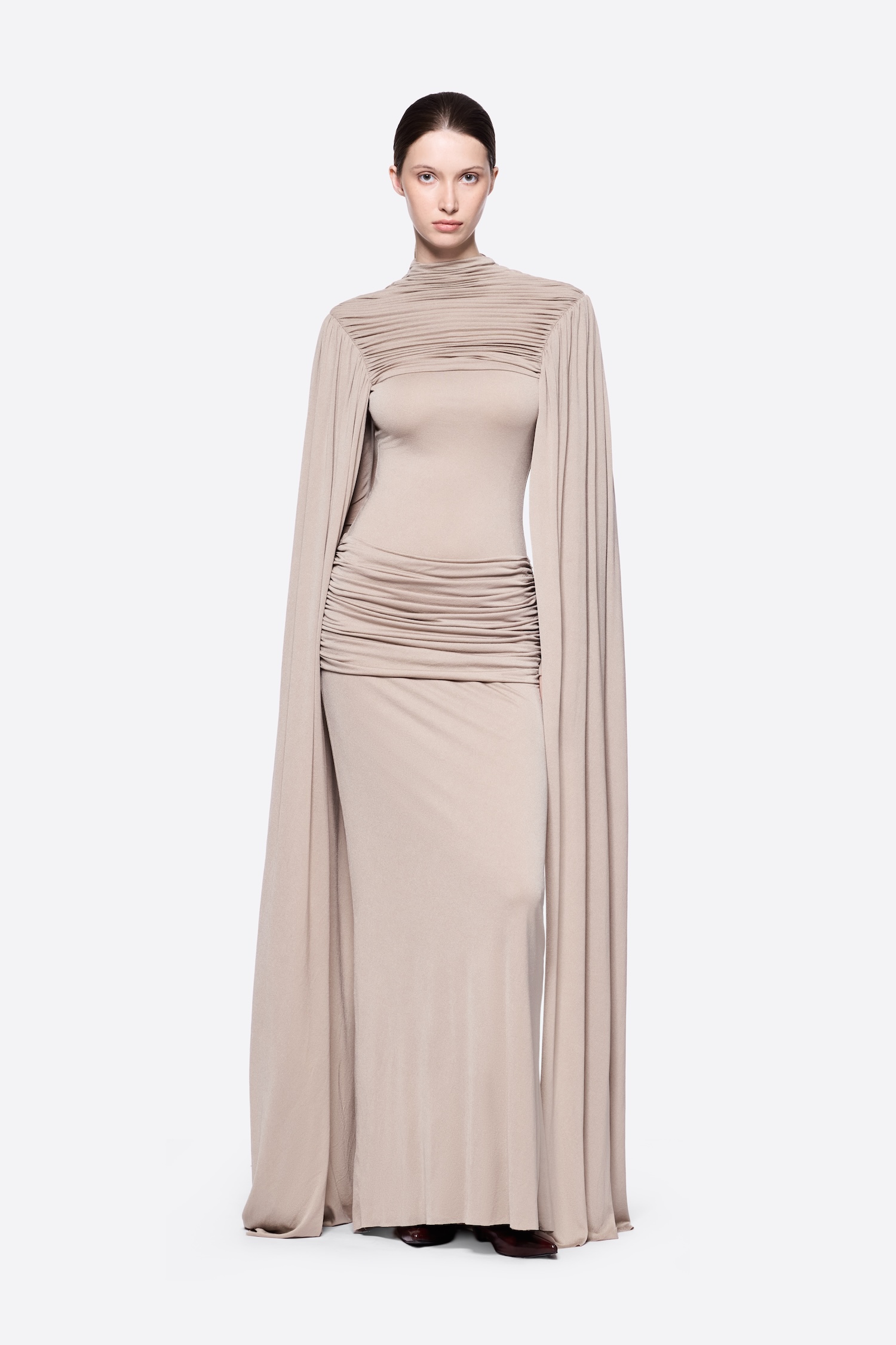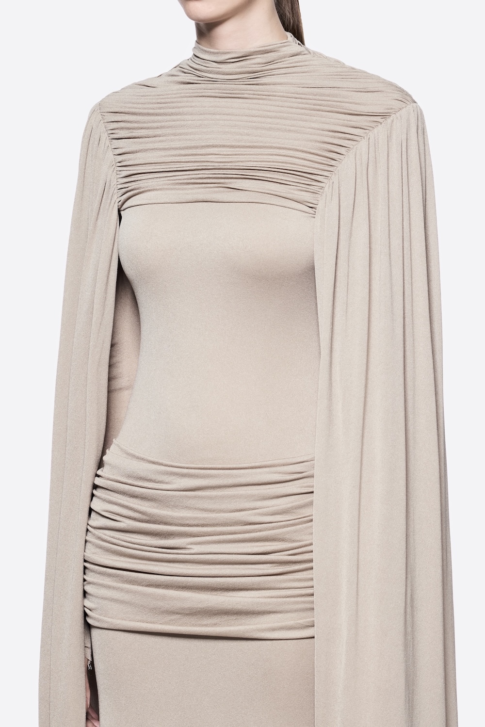 Measure the length of the arm from the shoulder seam down to the wrist bone, following the curve of the arm.