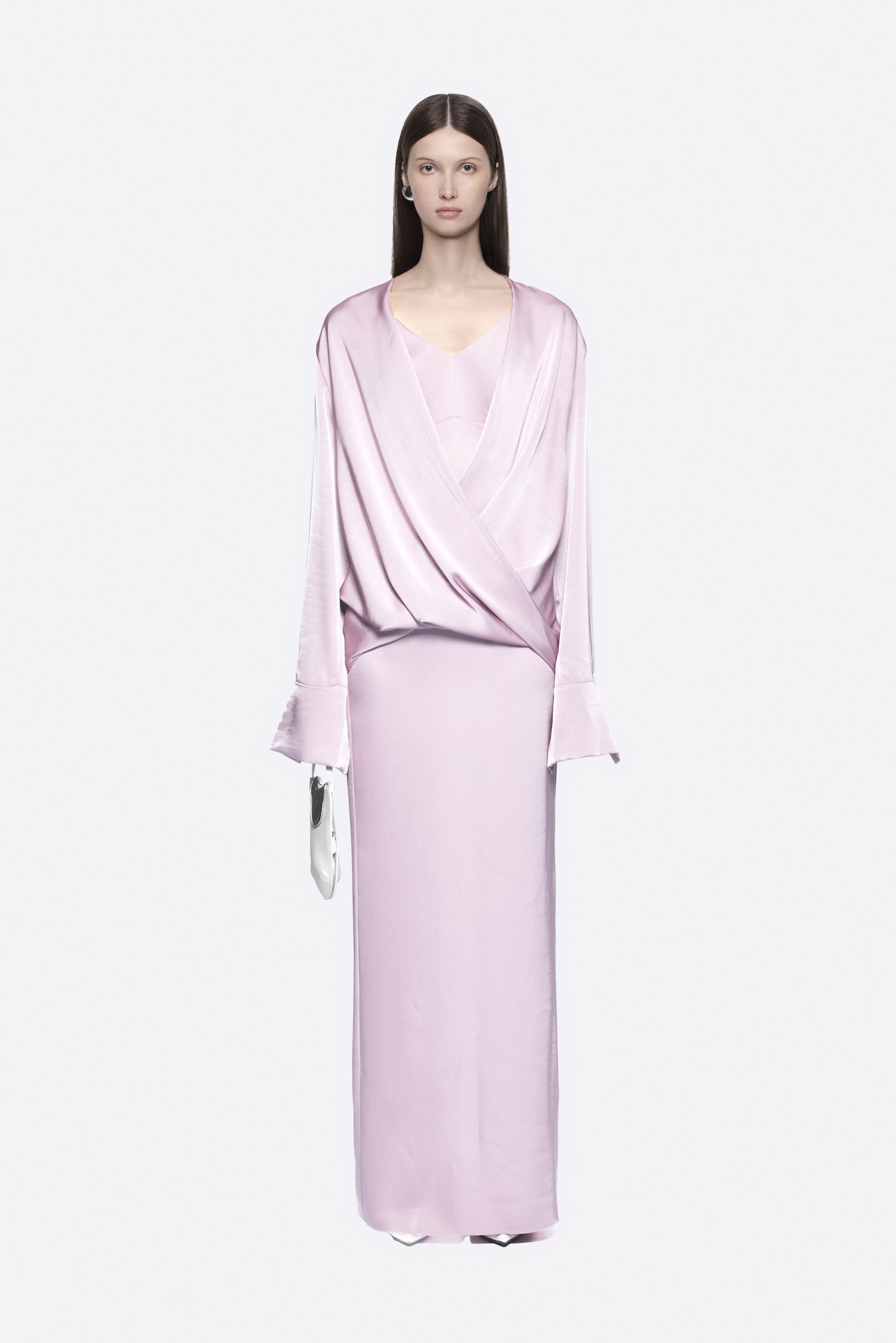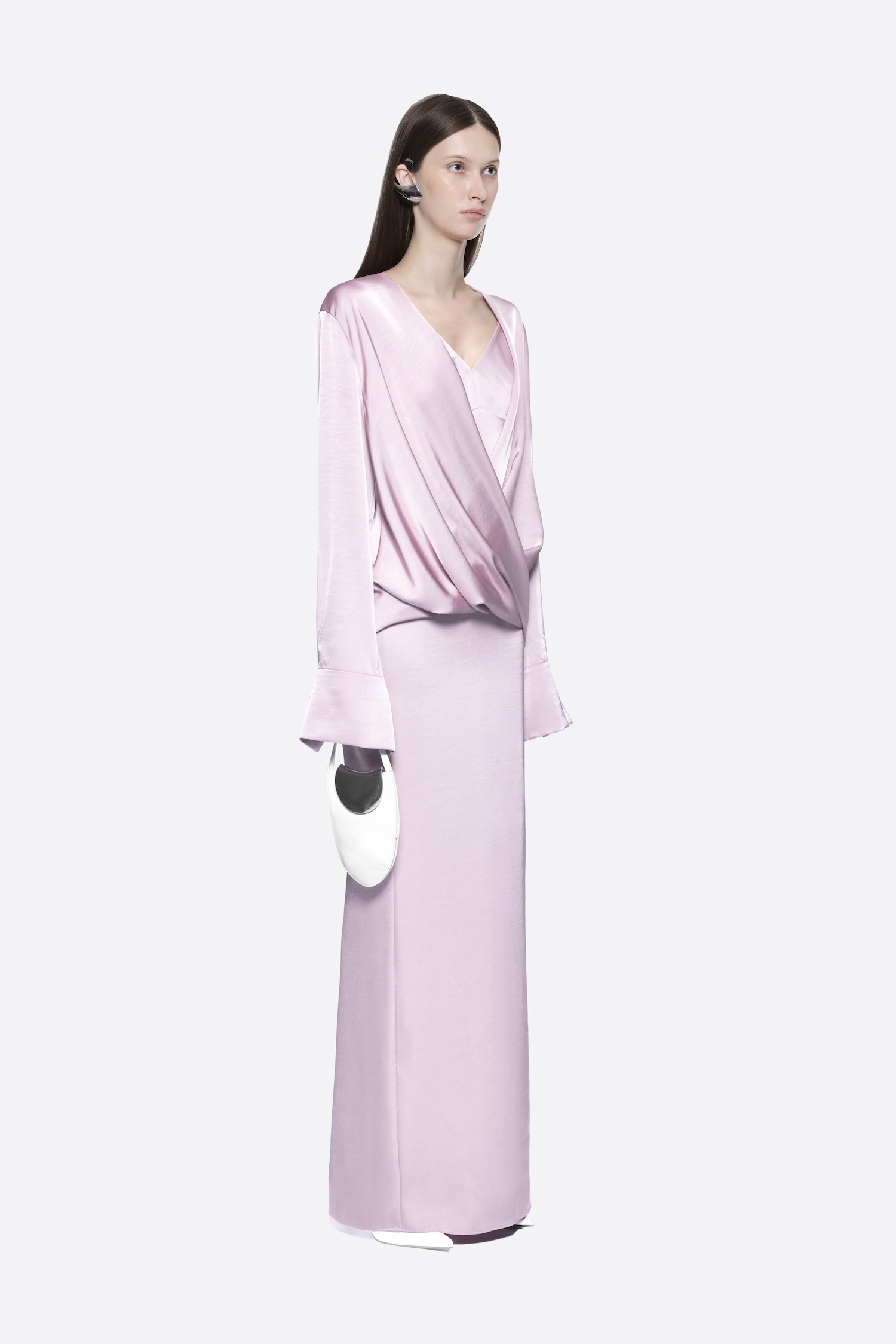 Measure the length of the arm from the shoulder seam down to the wrist bone, following the curve of the arm.