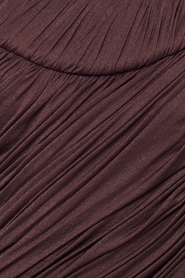 – Detail: Asymmetrical draping details, Pumped draping cup details, metallic details on both shoulders